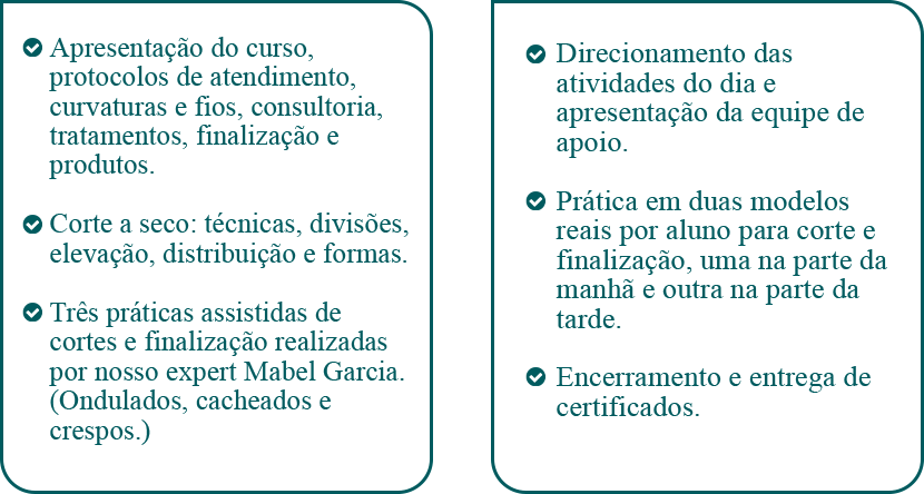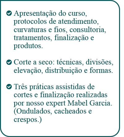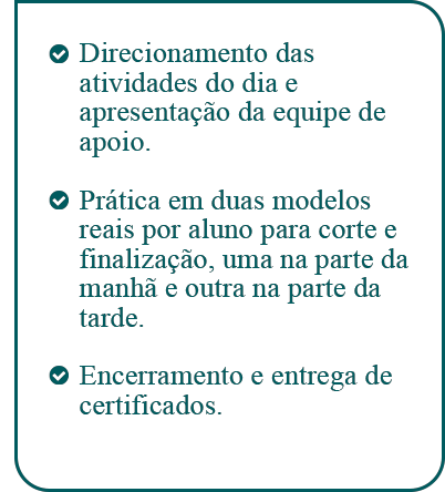 finalização e tratamentos, além de prática em modelos.